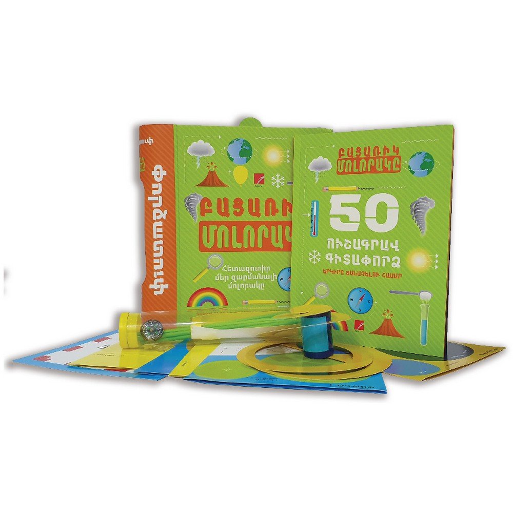 Մեր մոլորակի առեղծվածները ներկայացնող այս հրաշք փորձատուփը և ուշագրավ փորձերը պրպտող գիտունիկներին հնարավորություն կտան ուժերը փորձել, հասկանալ ջրի շրջապտույտն ու ավերիչ եկրաշարժերի պատճառները, ինքնուրույն հրաբուխ առաջացնել և շատ այլ համարձակ փորձեր կատարել: