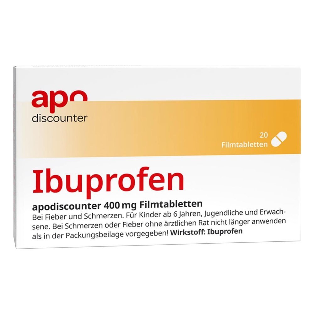 Analgésicos ibuprofeno 400 mg de apodiscounter (20 piezas),Ibuprofen 400 mg Schmerztabletten von apodiscounter (20 stk)