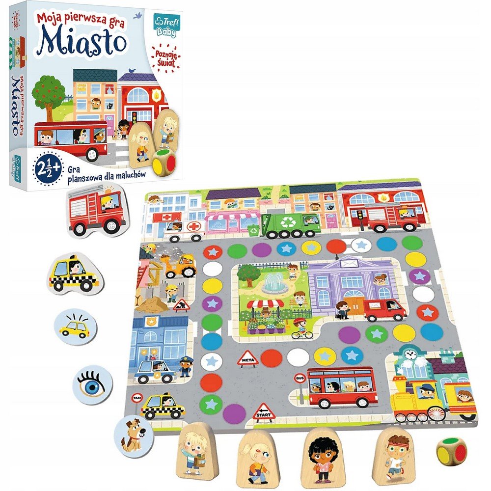 A perfect introductory board game for the youngest children, where they guide vehicles to designated spots while completing fun tasks. The large wooden elements and simple rules make it an engaging and educational game for little ones.