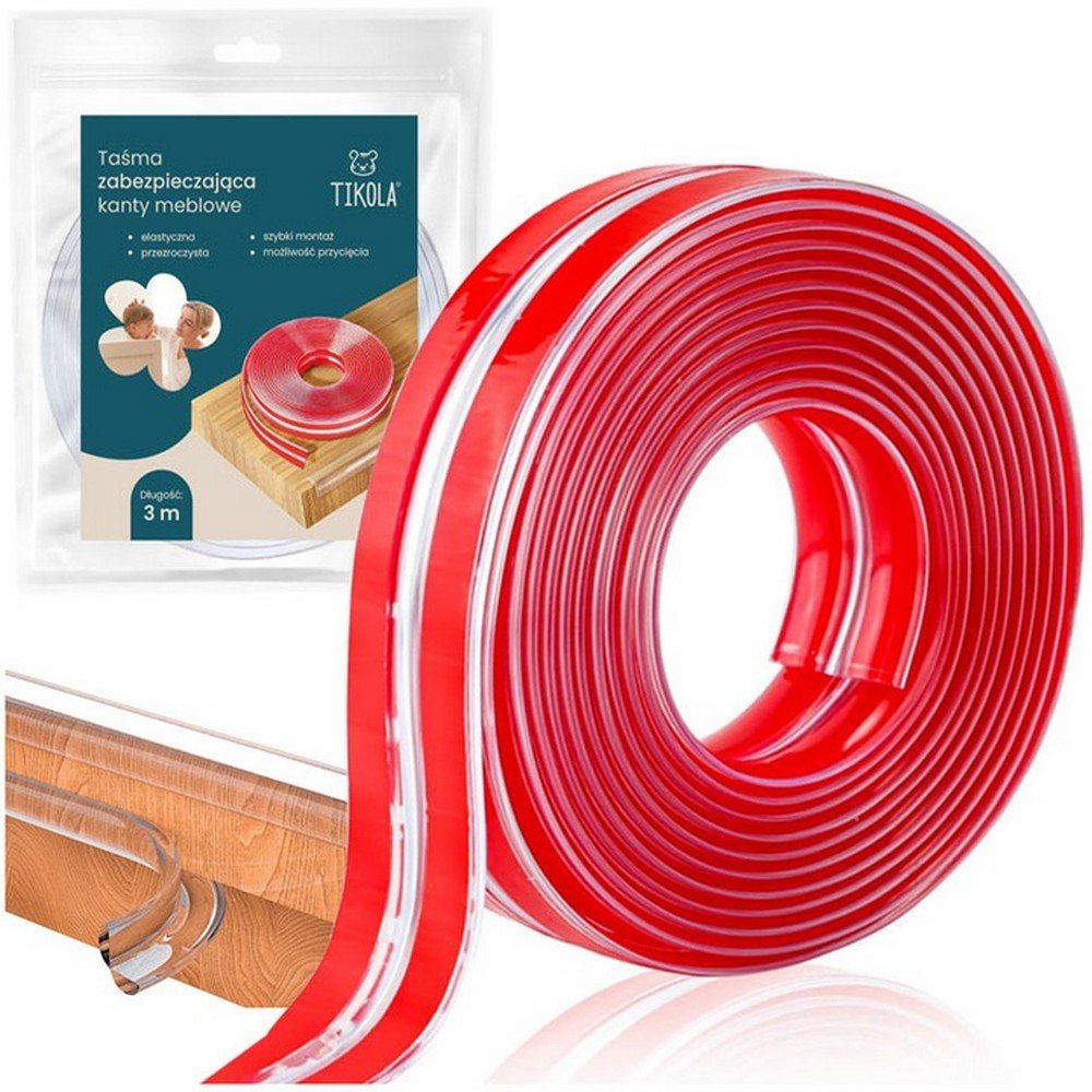 Transparent protective tape designed to cover the edges of furniture, preventing damage and reducing injury risks; easy to apply and remove.