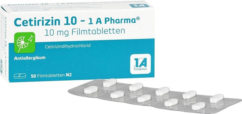 Цетиризин 10 - 1 A Pharma®, таблетки, покрытые оболочкой, 10 мг Действующее вещество: цетиризиндигидрохлорид. Области применения: у взрослых и детей с 6 лет для облегчения симптомов со стороны носа и глаз при сезонном и круглогодичном аллергическом рините и для облегчения крапивницы (Urtikaria). Предупреждение: содержит лактозу. Ознакомьтесь с инструкцией по применению на предмет рисков и побочных эффектов. И проконсультируйтесь с врачом или фармацевтом!