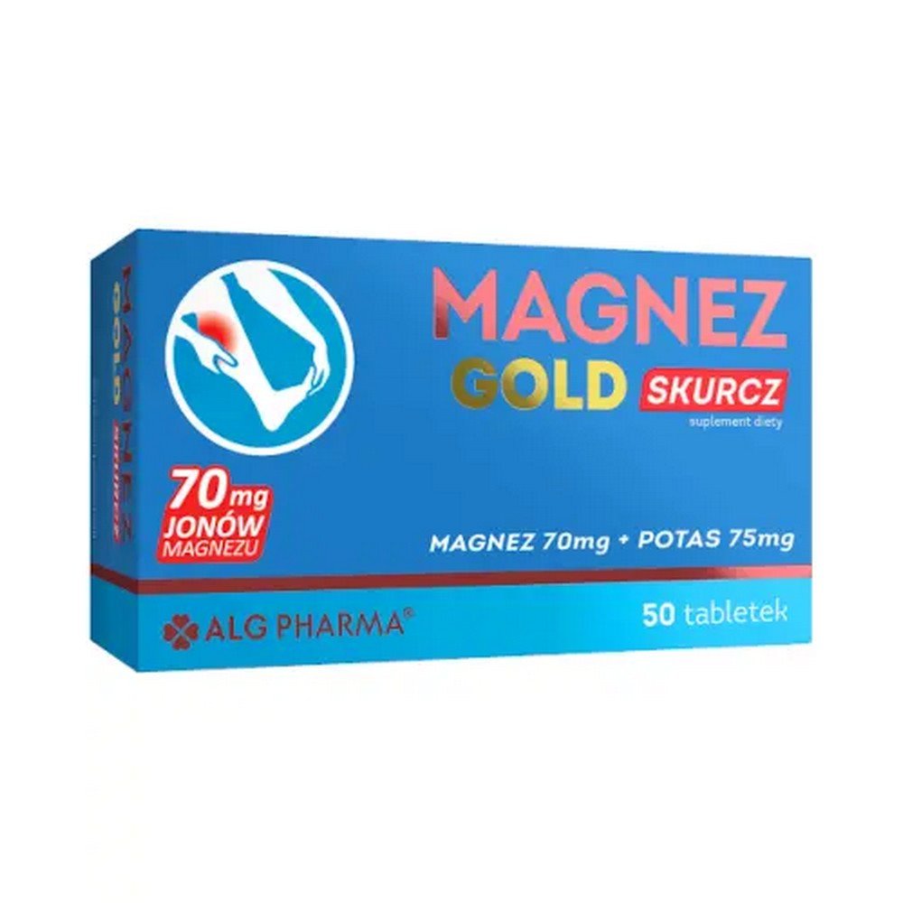 Alg Pharma Magnesium Gold Spasm est un complément alimentaire contenant du magnésium et du potassium. Le produit est destiné aux adultes.