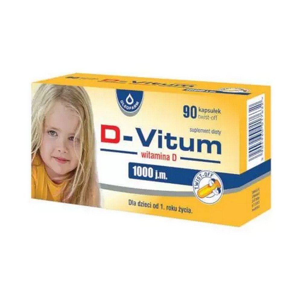 D-Vitum 1000 IU vitamin D for children over 1 year of age 90 twist-off capsules,D-Vitum 1000j.m. witamina D dla dzieci po 1 roku życia 90 kapsułek twist-off,Oleofarm