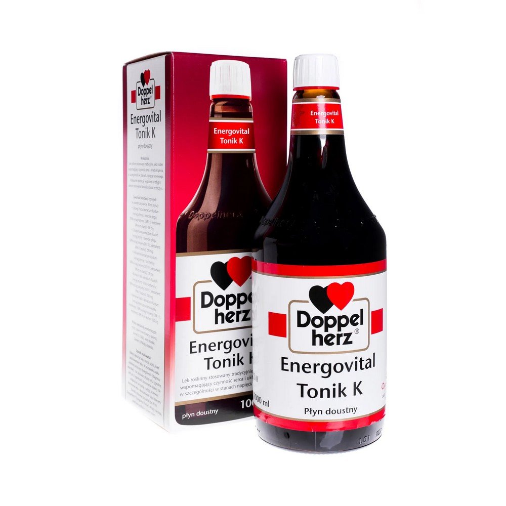 Doppelhertz Energivital Tonic K es un fármaco que apoya la actividad del corazón y del sistema circulatorio, especialmente en estados de tensión nerviosa. Las siguientes hierbas son tradicionalmente responsables de su acción: espino, melisa, romero y valeriana.