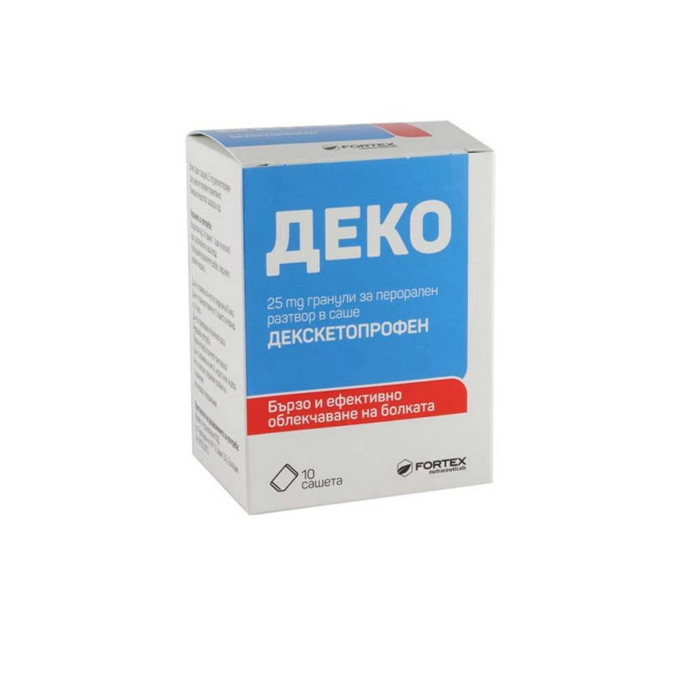 DEKO is used for short-term symptomatic treatment of acute mild to moderate muscle and joint pain, painful menstruation (dysmenorrhea) and toothache.