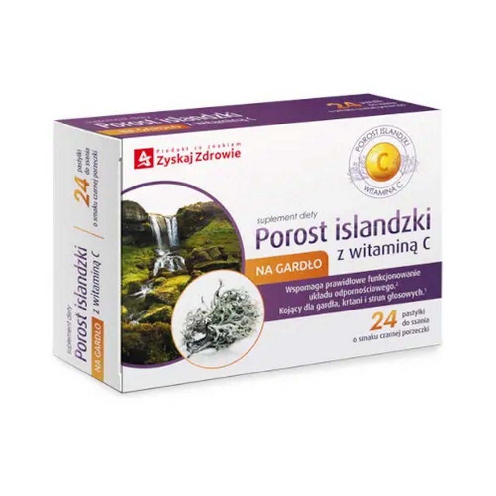 Price Gain Health Icelandic lichen with vitamin C for the throat, blackcurrant flavor, 24 lozenges,Zyskaj Zdrowie