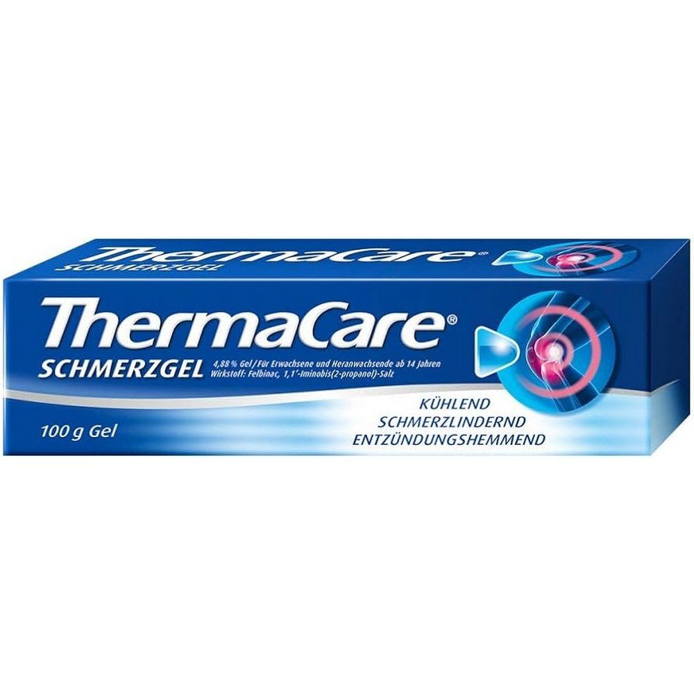 Áreas de aplicación: Thermacare gel analgésico se utiliza en adultos y adolescentes a partir de 14 años para tratar el dolor en: distensiones agudas, esguinces o hematomas en la zona de las extremidades como resultado de lesiones deportivas y accidentes; en enfermedades reumáticas inflamatorias de los tejidos blandos como tendinitis, inflamaciones de tendones, bursitis.