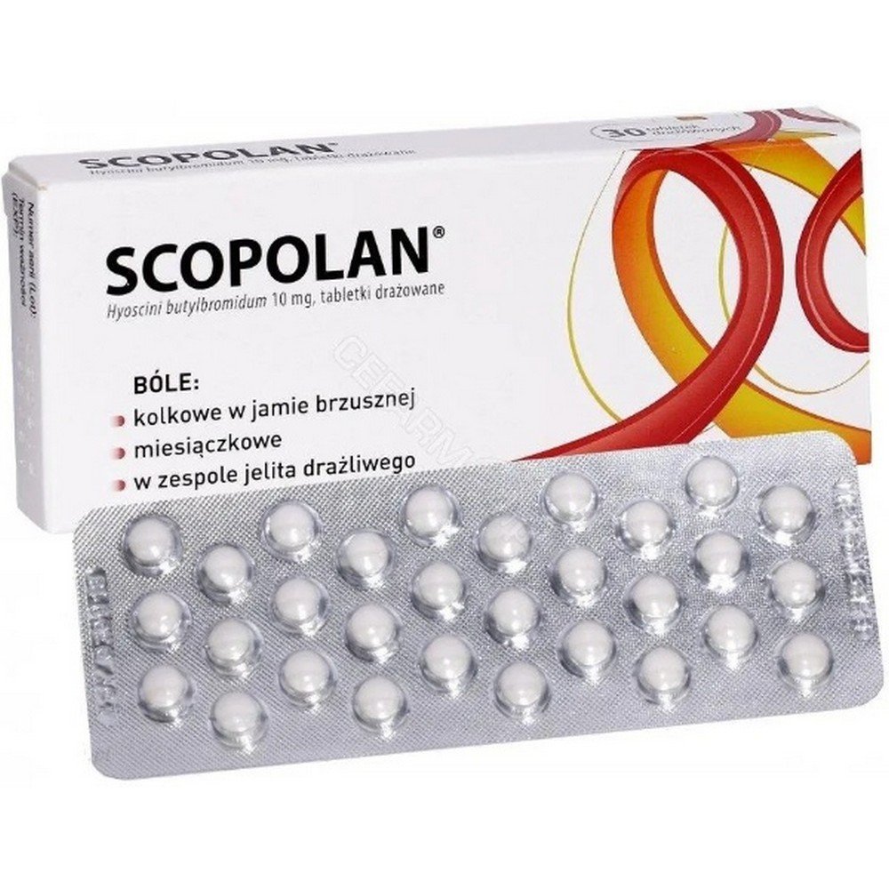 “Scopolan tablets (pack: 30 pcs.) contain hyoscine butyl bromide, which has a relaxing effect on the smooth muscles of the abdominal cavity and relieves pain in the digestive tract, biliary tract and genitourinary system.