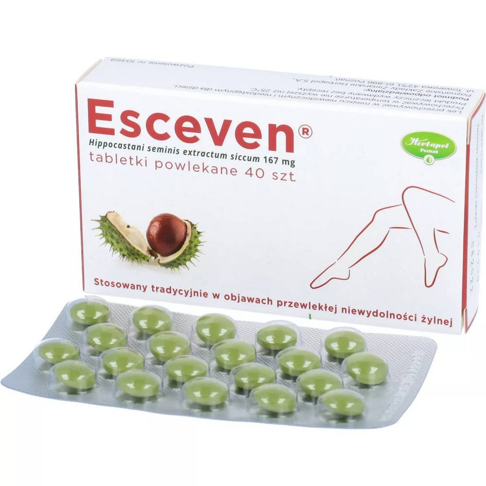 Esceven contient de l’extrait sec de graines de marron d’Inde, qui contient de l’escine, qui augmente la tension des vaisseaux veineux.