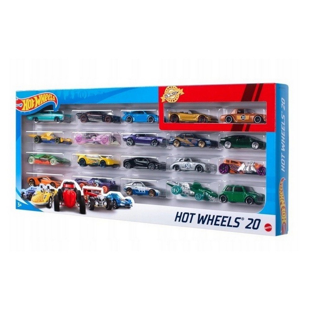 This Hot Wheels set includes 20 super vehicles, each with metal bodies and plastic trim. These cars are designed for both durability and style, featuring movable wheels for smooth play on flat surfaces.