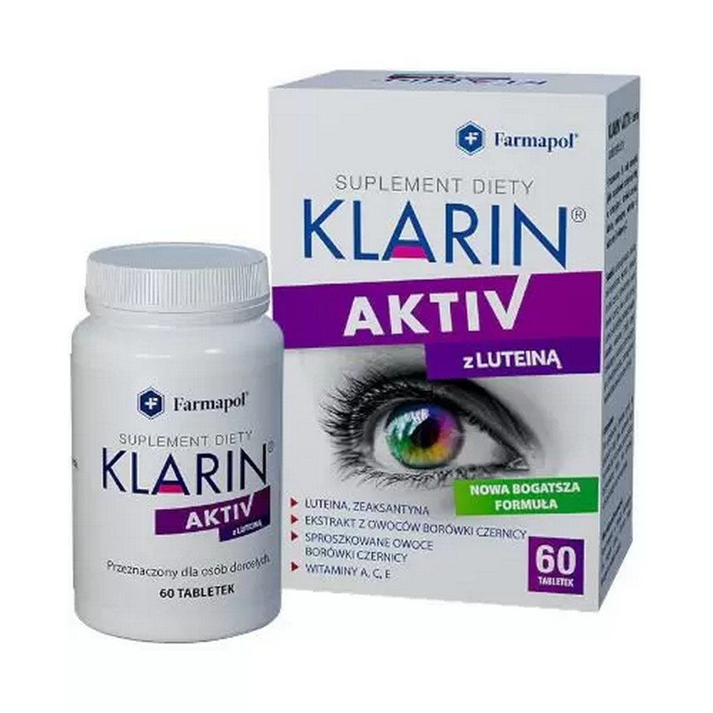 Klarin Aktiv est destiné aux adultes en complément de l’alimentation quotidienne avec des anthocyanes de myrtille et de la lutéine, ainsi que du bêta-carotène et de la vitamine E.