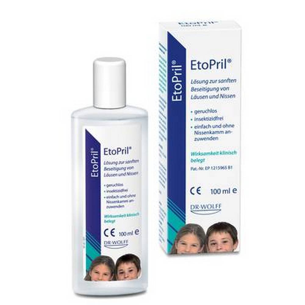 Таким образом, Этоприл не действует химически, но приводит к нетоксичному уничтожению вшей и гнид с помощью простого физического процесса. После испарения циклометикона диметикон оседает как на вшах и гнидах, так и в их дыхательных путях. Это нарушает дыхание и водный баланс паразитов до такой степени, что они больше не могут выживать.