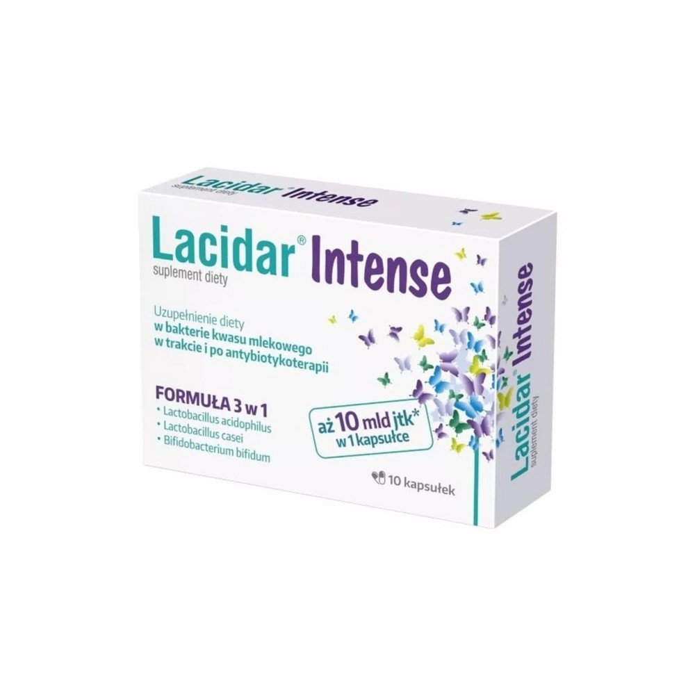 Lacidar Intense (0,3 g) es un complemento alimenticio que favorece la reposición intensiva y completa de la microflora intestinal natural durante y después de la terapia con antibióticos, así como en otras situaciones, como cambios en la dieta y diarreas de diversas etiologías.