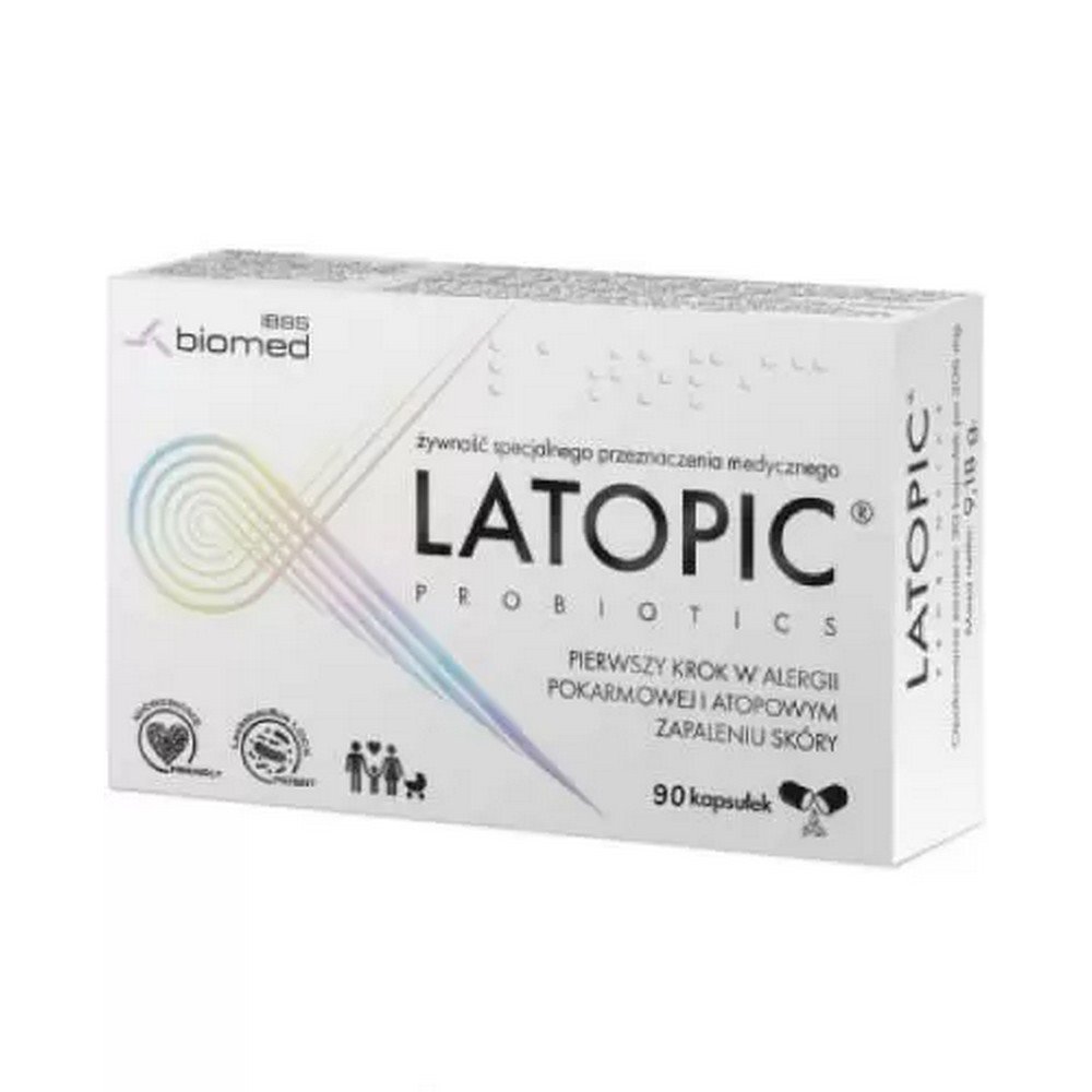 Une gélule Latopic® contient : maltodextrine, ingrédient de la gélule – gélatine, 1 milliard de bactéries lactiques lyophilisées dans les proportions suivantes : 50 % Lactobacillus casei ŁOCK 0919 (anciennement Lactobacillus paracasei ŁOCK 0919), 25 % Lactobacillus rhamnosus ŁOCK 0908 (anciennement Lactobacillus casei ŁOCK 0908) , 25% Lactobacillus rhamnosus ŁOCK 0900 (anciennement Lactobacillus casei ŁOCK 0900), colorant pour capsule – dioxyde de titane, antioxydant – acide ascorbique.