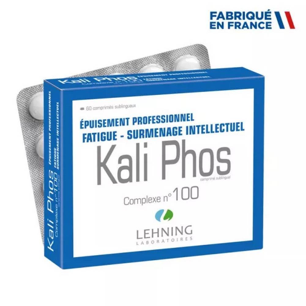 Kali Phos complex n°100 from the Lehning laboratory is a homeopathic medicine indicated in cases of fatigue and intellectual overwork .