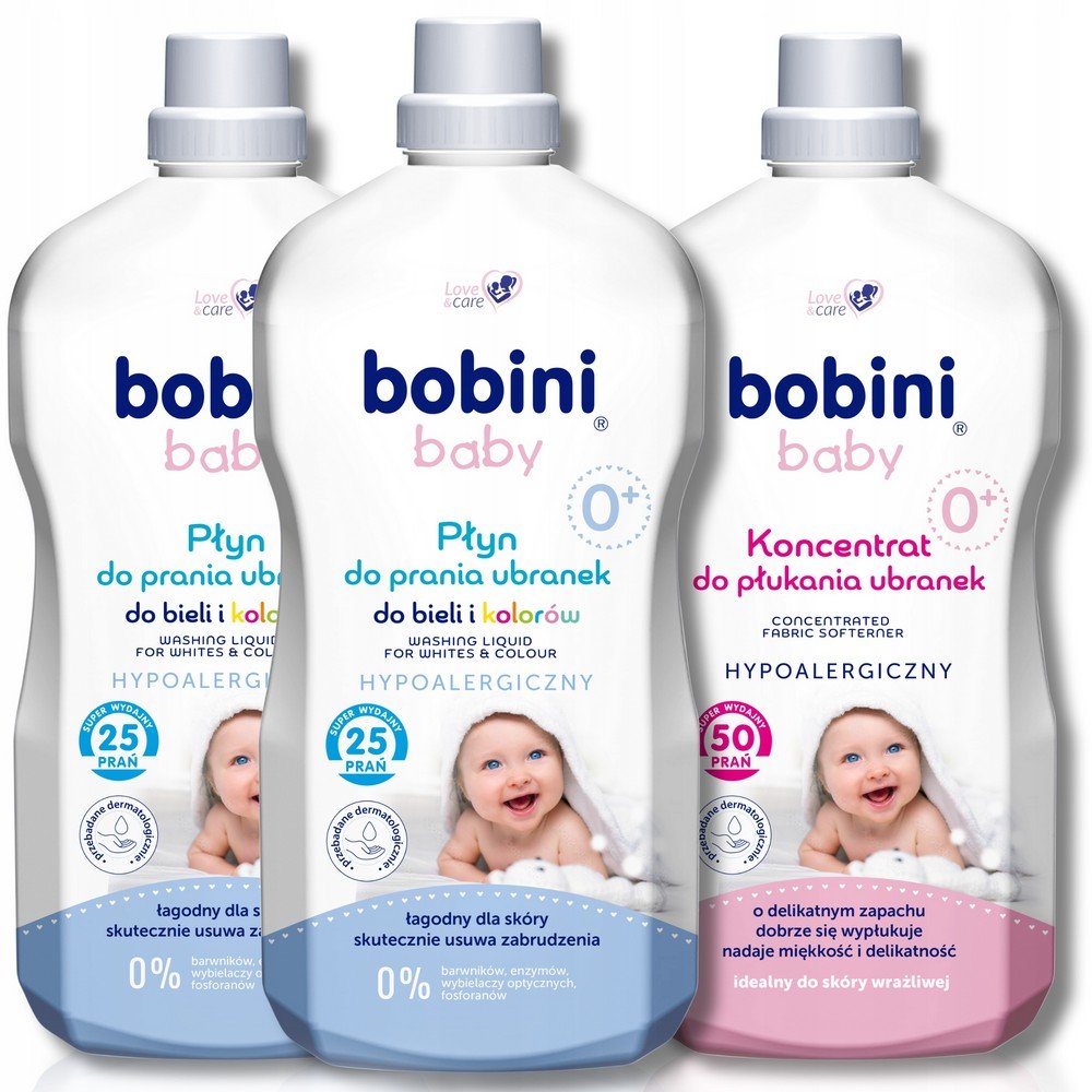 Liquide à lessive Bobini pour le rinçage des tissus pour enfants, 5,4 L (50 lavages + 50 rinçages), spécialement formulé pour apporter un soin doux aux vêtements des enfants tout en les laissant doux, frais et sans allergènes. Idéal pour les peaux sensibles.
