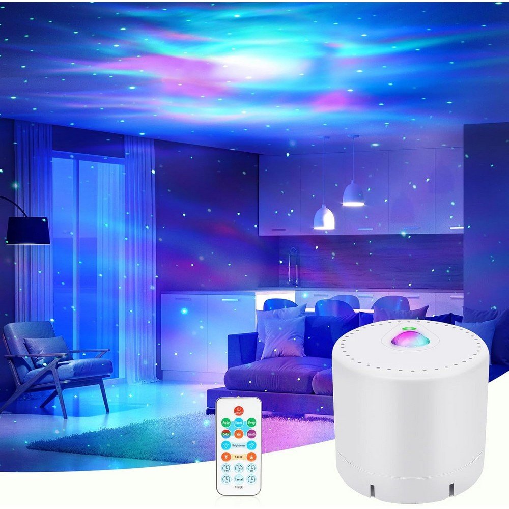 - < strong>Design multifonctionnel< / strong>: Combine un projecteur d’étoiles et un effet de vague de mer LED pour créer une atmosphère romantique.< / li>