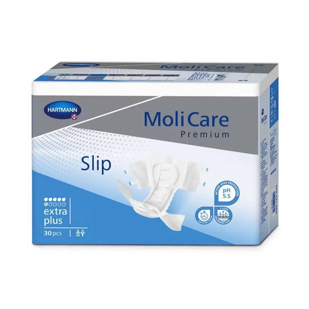 MoliCare Premium Slip Extra Plus diapers are recommended for people with moderate urinary and/or fecal incontinence, as well as highly dependent, bedridden patients.