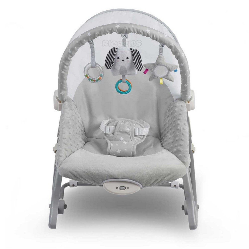 The Nukido multifunctional lounger features a sleek grey design and offers soothing vibrations to keep your baby comfortable. It is designed to adapt to various uses, providing a cozy space for playtime, relaxation, or sleep.