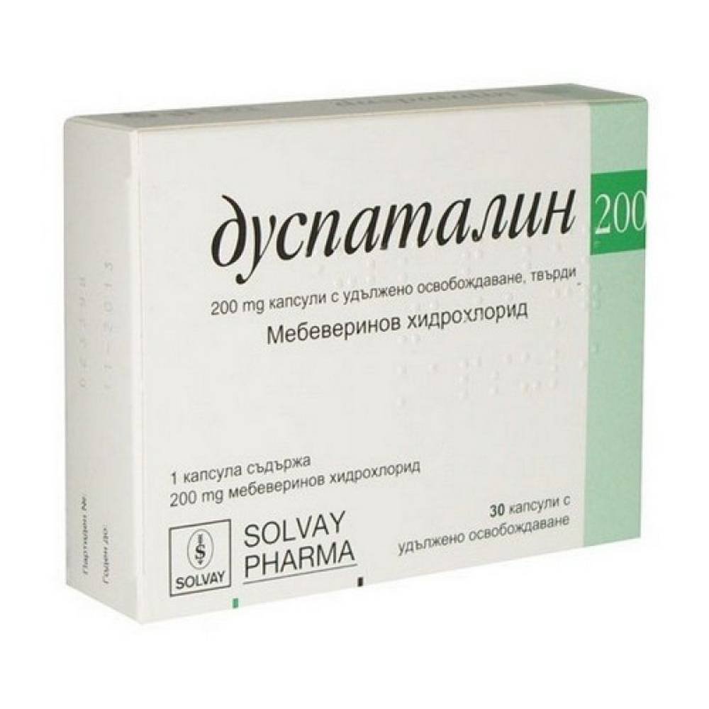 - Duspatalin es un medicamento de venta sin receta en forma de cápsulas, que se utiliza para la hinchazón, el dolor y los calambres en el abdomen, los gases, la diarrea y el estreñimiento. Las cápsulas de Duspatalin se utilizan para los trastornos intestinales, el malestar y los problemas del colon y, a diferencia de otros medicamentos, alivia los espasmos y el dolor sin cambiar el tono y las funciones del tracto intestinal. Duspatalin contiene clorhidrato de mebeverina, que pertenece al grupo de los antiespasmódicos que actúan sobre los intestinos. Los intestinos son un tubo muscular largo por el que pasan y se procesan los alimentos, y cuando se produce un espasmo en ellos, se estrechan, lo que a su vez provoca dolor.
