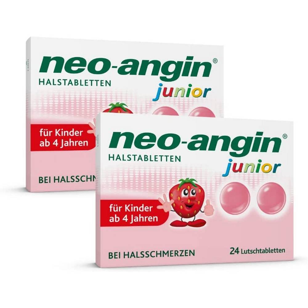 Help with sore throats for small sore throat patients: The neo-angin ® junior throat lozenges relieve a sore throat and soothe the irritated mucous membrane in the mouth and throat. They are free from alcohol and artificial colors and have a delicious strawberry flavor.”