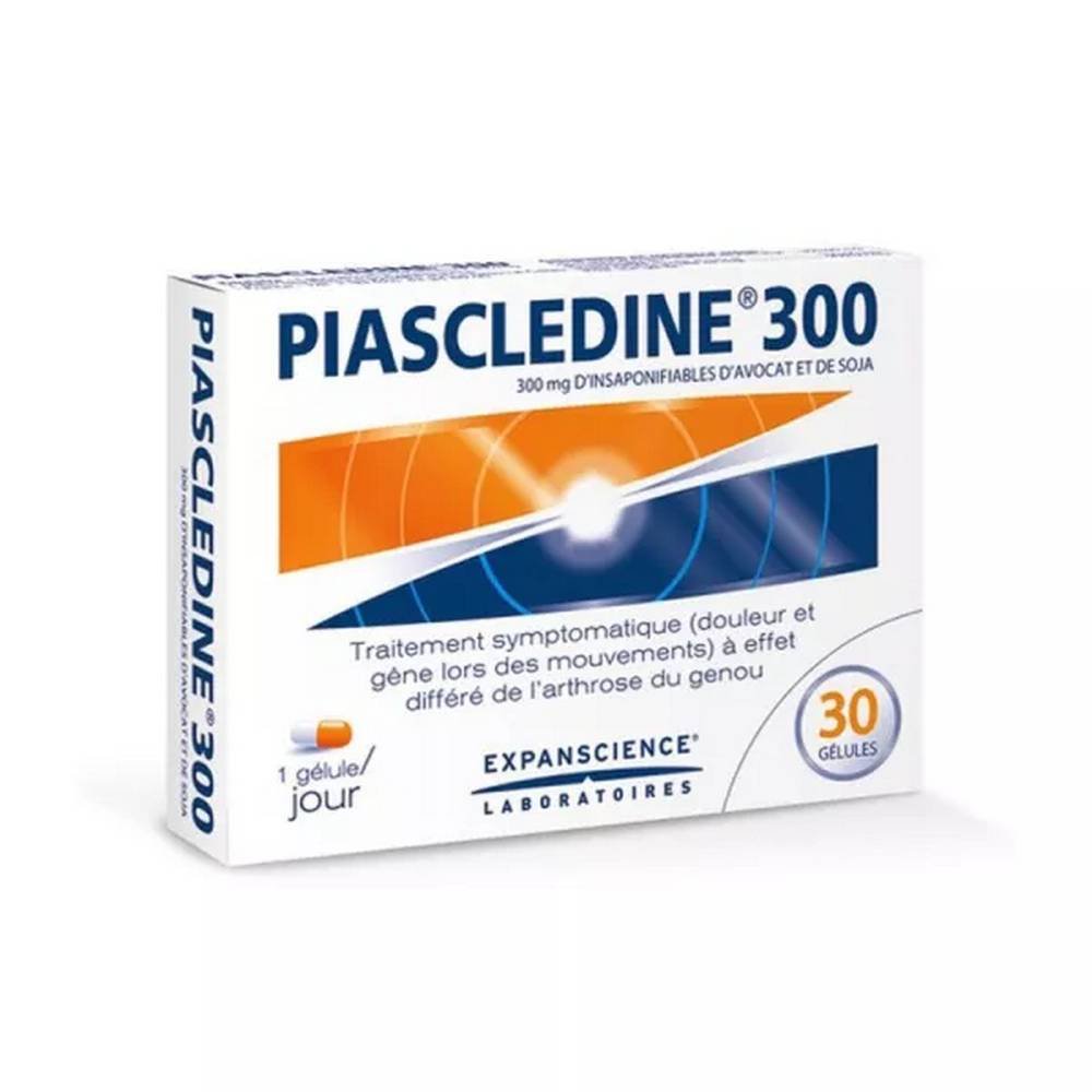 Piascledine 300 mges un medicamento compuesto por extractos de plantas, utilizado en eltratamiento sintomático< /span>(dolor y malestar durante los movimientos) con efecto retardado de la artrosisde  la rodilla . Se presenta en forma de cápsulas de color naranja y gris beige.