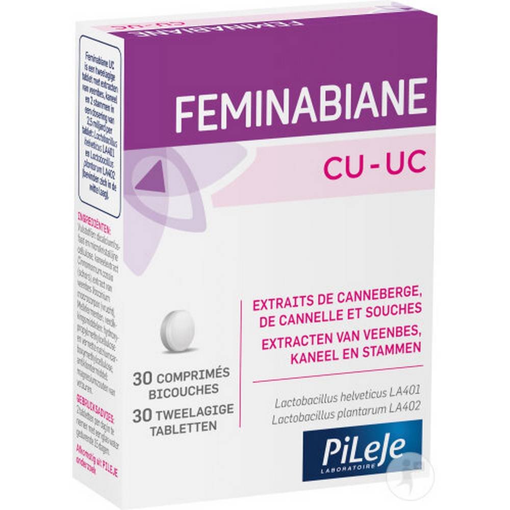 El laboratorio PiLeJe ha puesto en práctica toda su experiencia para ofrecer una fórmula completa en una galénica innovadora. Feminabiane CU es el primer suplemento dietético en comprimido bicapa que combina extractos de plantas con cepas microbióticas.