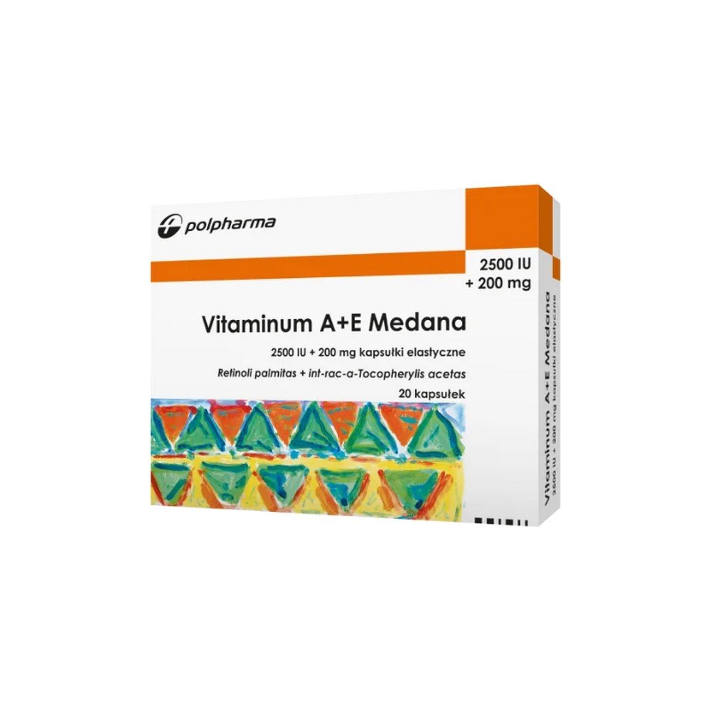 Vitamin A+E Medana is a medicinal product intended for use in cases of vitamin A and E deficiency with symptoms such as metabolic disorders, twilight amblyopia, immune disorders, pathological changes in the epithelium and mucous membranes.
