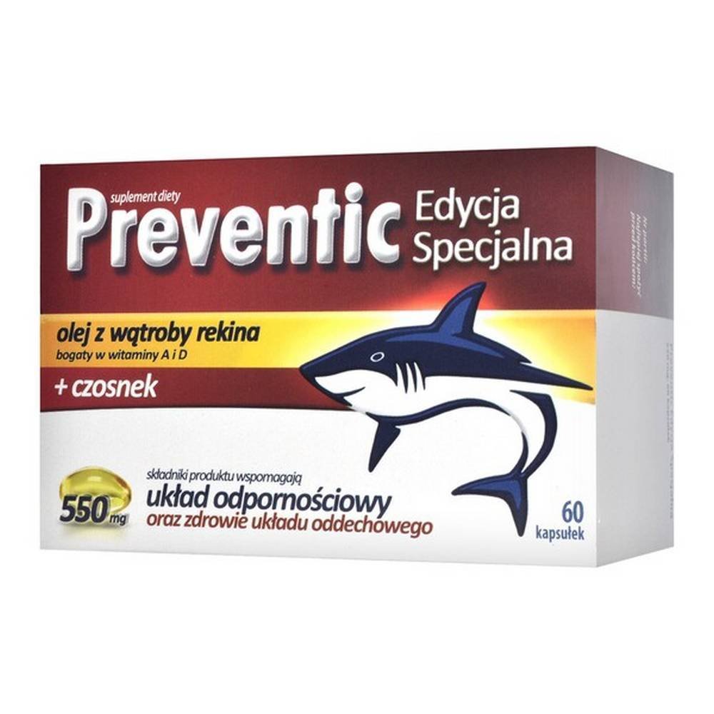 Preventic Special Edition – un suplemento dietético que contiene aceite de hígado de tiburón, que es una fuente de alquilgliceroles, escualeno y vitaminas A y D3, así como macerado de aceite de ajo. Destinado a adultos y niños mayores de 3 años.