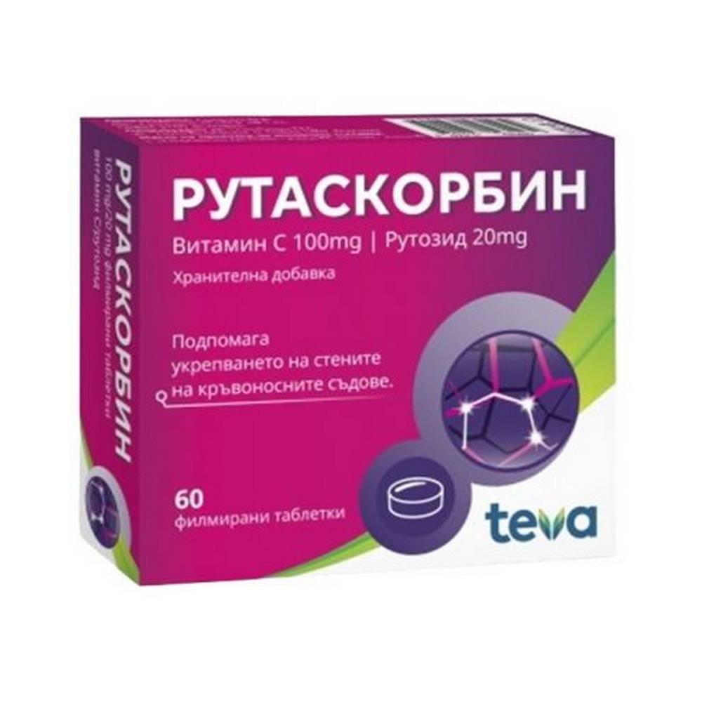 - Rutascorbin de Teva contient du rutoside, qui contribue au fonctionnement des vaisseaux sanguins (artères, veines et capillaires) et normalise la perméabilité, la résistance et l’élasticité de leurs parois. Le produit est également enrichi en vitamine C, qui favorise la formation normale de collagène.