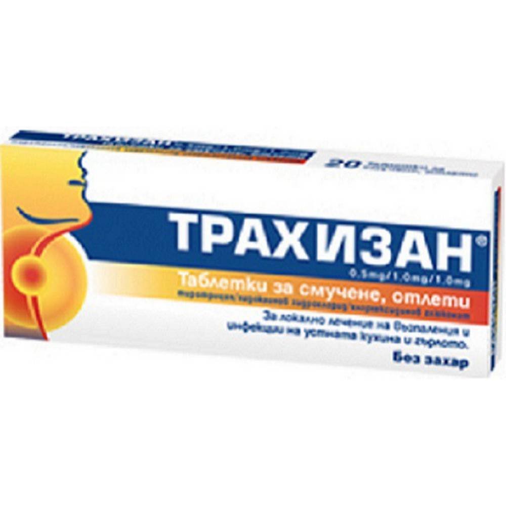 - Трахизан применяется для местного лечения воспалений и инфекций полости рта и горла, таких как воспаления слизистой оболочки полости рта и десен, пародонтит, глоссит, ангина, фарингит, затрудненное глотание. Для профилактики инфекций до и после хирургических операций в полости рта и горла (удаление зуба, хирургическое лечение десен, удаление миндалин). скачать/