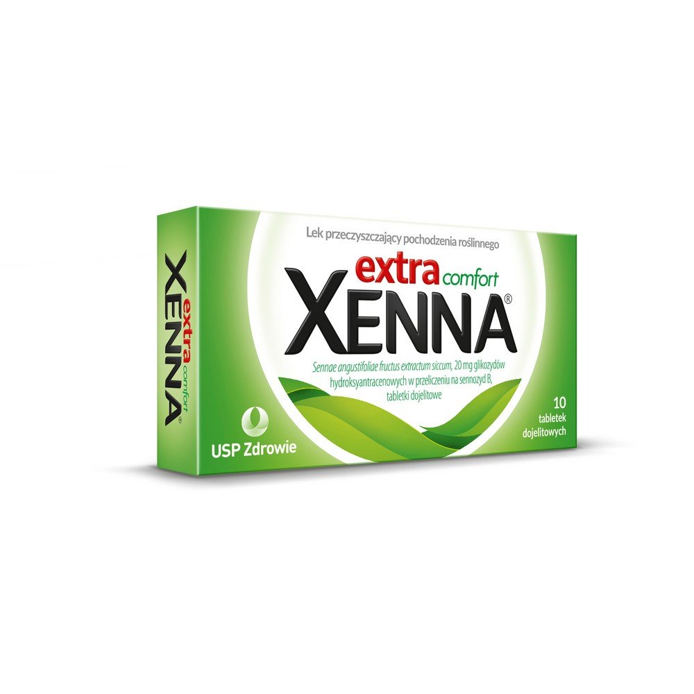 Xenna extra confort es un medicamento a base de hierbas para el tratamiento inmediato del estreñimiento. Se produce en forma de comprimidos entéricos que contienen un ingrediente laxante a base de hierbas, es decir, extracto seco del fruto del sen. Contiene glucósidos de hidroxiantraceno (senósidos), que estimulan la actividad del intestino grueso, lo que facilita el movimiento de las masas fecales. Además, Xenna extra confort suaviza las heces aumentando la secreción de moco al tiempo que inhibe la reabsorción de agua de la luz intestinal.