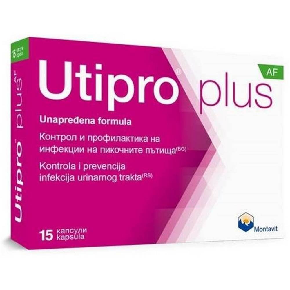 - Utipro plus AF de Montavit est destiné au contrôle et à la prévention des infections urinaires causées par des agents pathogènes tels que E.coli et d’autres bactéries à Gram négatif, qui sont généralement impliquées dans l’étiologie des infections urologiques. Il agit principalement dans les intestins et maintient la fonction normale de la vessie.