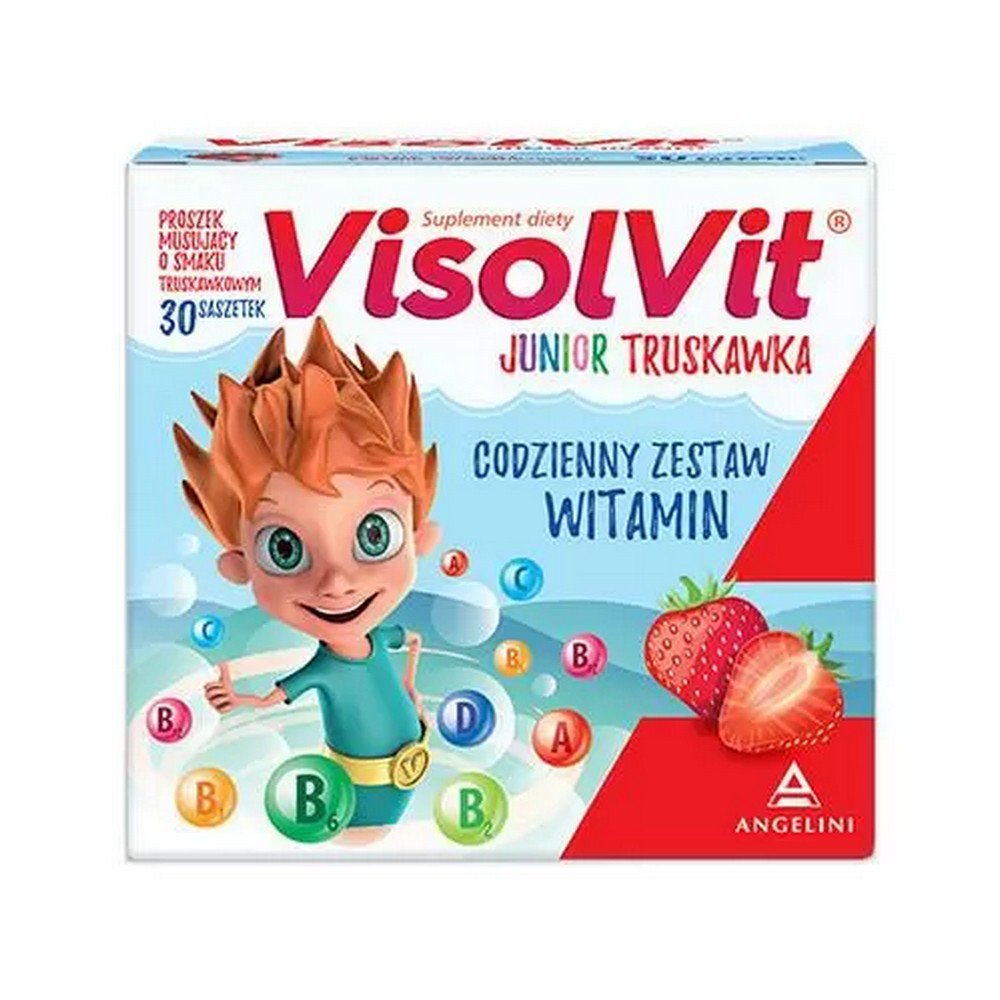Buy Visolvit Junior Strawberry powder with strawberry flavor 30 sachets,Angelini Pharma Polska Sp. z o.o.