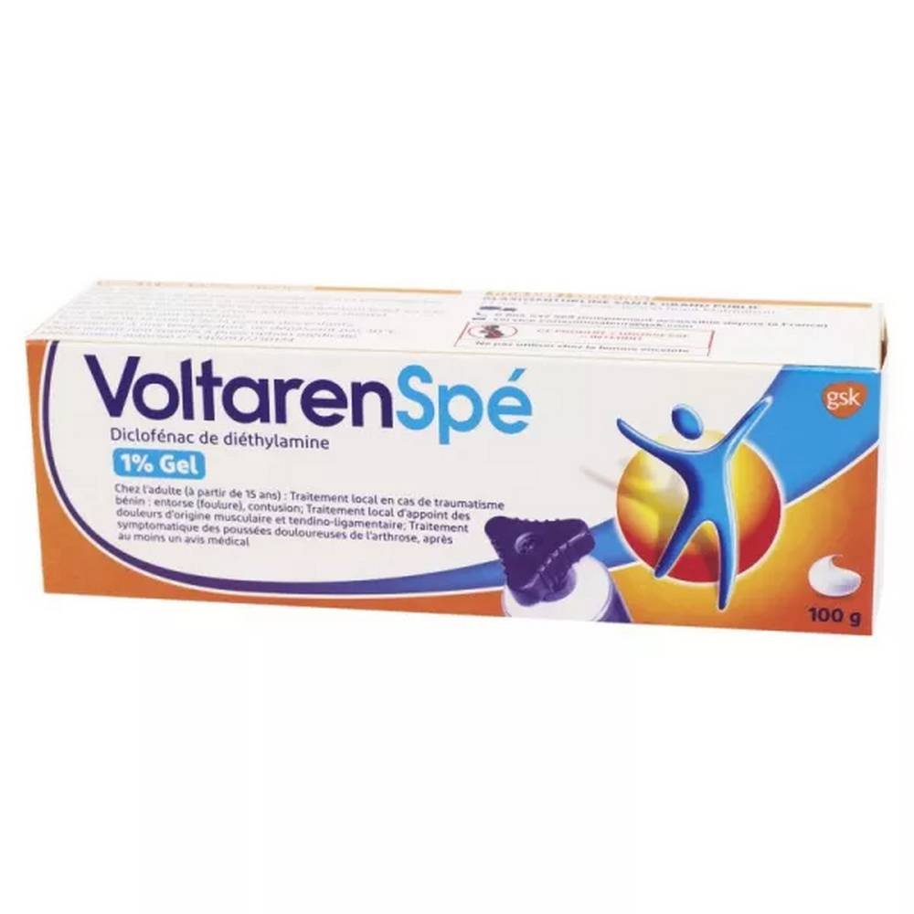 VoltarenSpé 1%, gel is a medication in gel form, with anti-inflammatory and analgesic properties (which calms pain). Composed of diclofenac, this medication is intended for adults (from the age of 15) for a short period in: local adjunctive treatment of pain of muscular and tendon-ligament origin, local treatment of benign trauma such as sprains and bruises, but also symptomatic treatment of painful outbreaks of osteoarthritis after at least medical advice. Its cap is practical in case of osteoarthritis of the hands for easier opening.