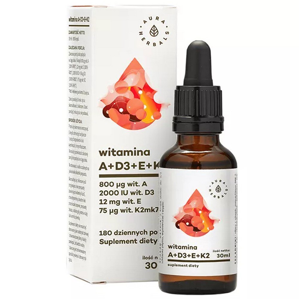 Aura Herbals Vitamina ADEK A + D3 + E + K2MK7, gotas 30 ml