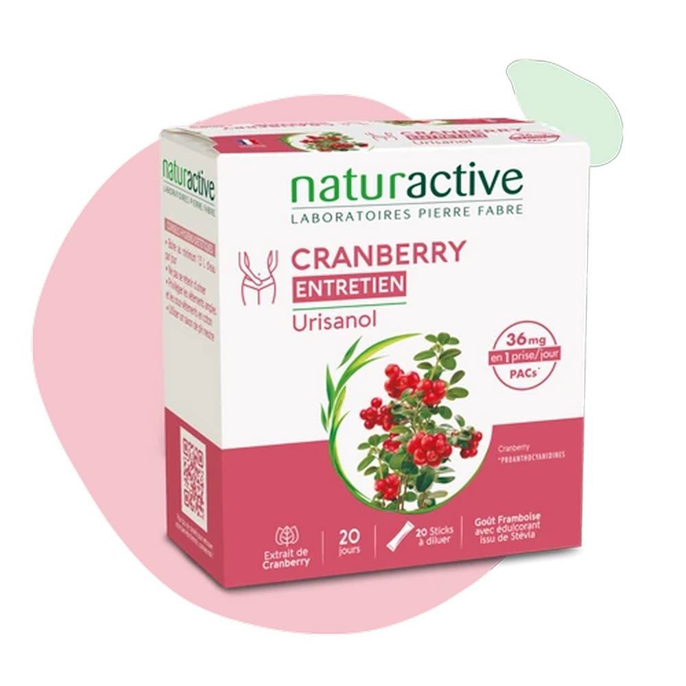 Naturactive Cranberry Entretien es una fórmula con Arándano Rojo dosificado con 36 mg de PACS (ProAnthoCyanidines) y un formato en barra para beber para favorecer el buen reflejo de hidratación.