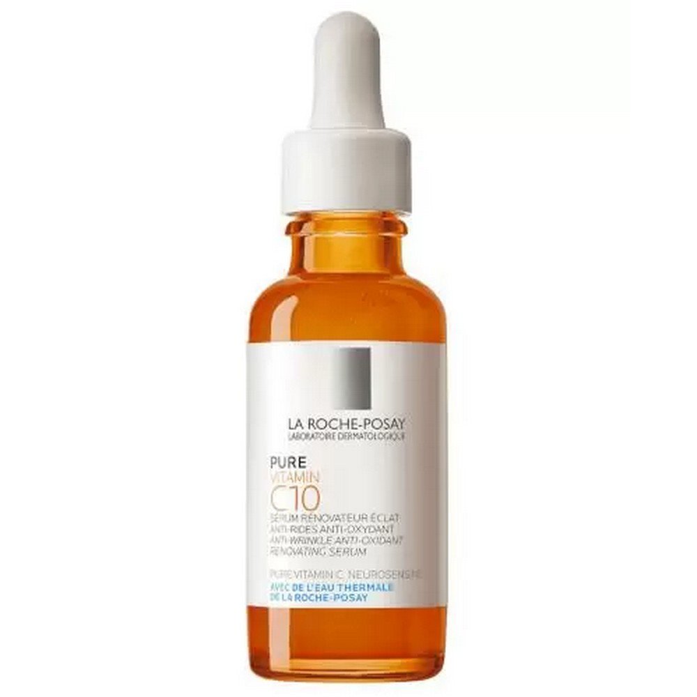 El suero La Roche Posay Vitamin C10 con vitamina C pura suaviza, hidrata, elimina las arrugas y reduce las líneas finas.