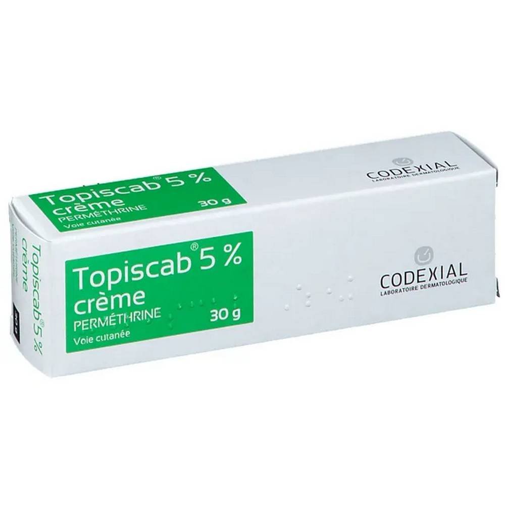 Topiscab 5% crema es unantiparasitario externo  medicamento, a base de permetrina, una molécula perteneciente a la familia de las piretrinas.