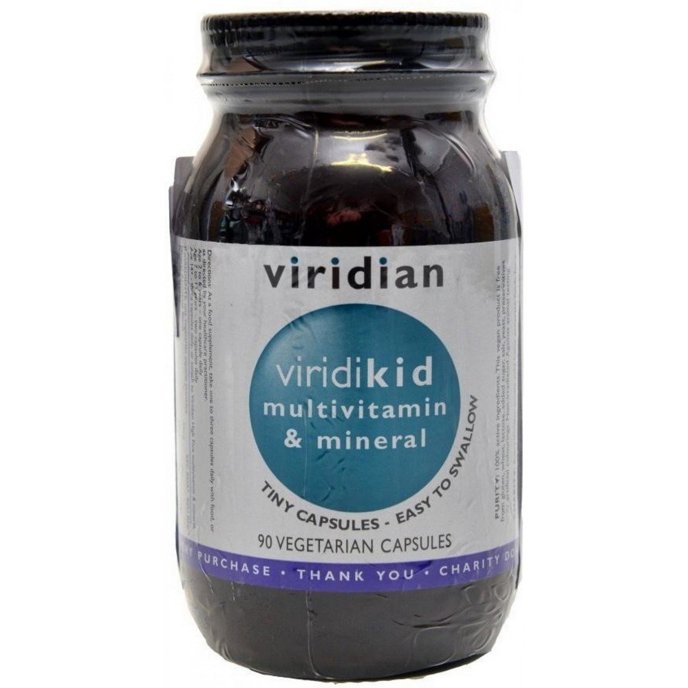 Multivitamínico, multimineral y súper antioxidante para niños de 3 a 14 años sin ningún aditivo químico. Viridikid no contiene azúcar, aspartamo ni otros edulcorantes, colorantes, saborizantes, aglutinantes (pegamentos) ni ningún otro ingrediente oculto indeseable. Las cápsulas pequeñas facilitan la deglución de los niños.