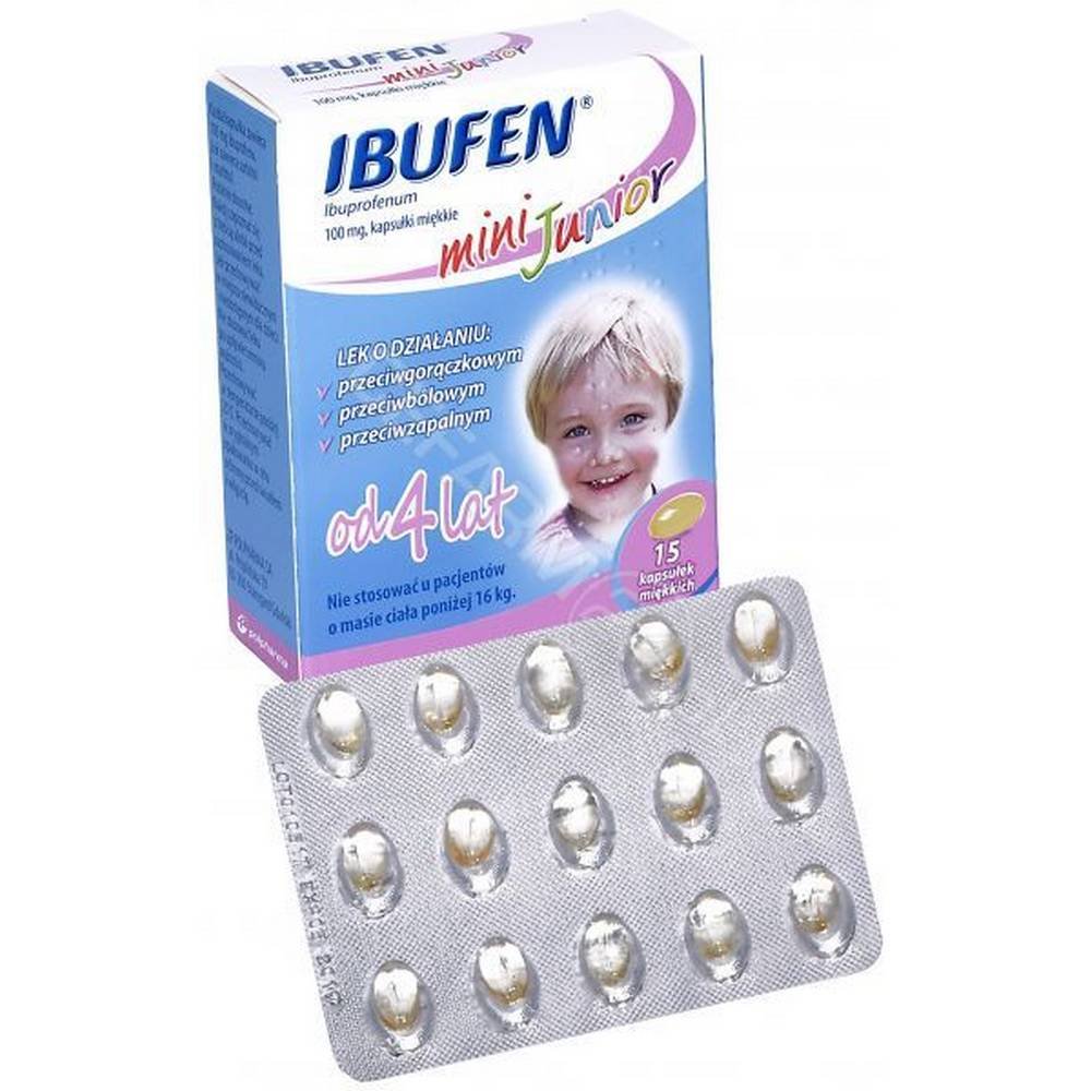 Ibufen mini Junior es un medicamento en forma de cápsulas blandas que contiene ibuprofeno para el tratamiento del dolor de diversos orígenes (p. ej. cabeza, dientes, músculos, dolor osteoarticular, resfriados y gripe) y fiebre. Ibufen mini Junior está destinado a niños a partir de 4 años, con un peso superior a 16 kg.