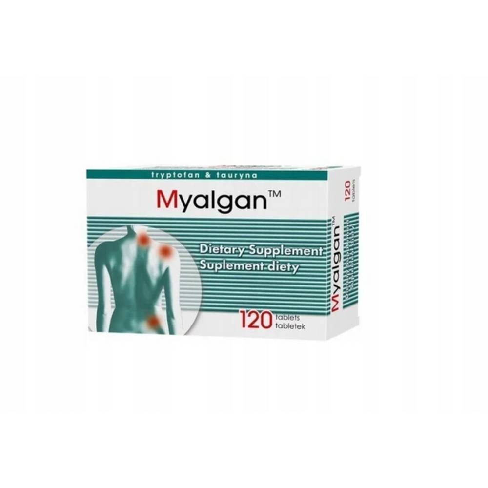 Myalgan, complément alimentaire, 120 comprimés est une préparation qui apporte 4 extraits naturels de plantes (feuilles de vigne, feuilles de marguerite, fruit d’ananas et pépins d’olivier) et de l’itaurine L-tryptophane. - Propriétés